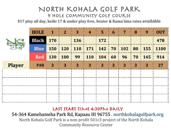 North Kohala Golf Park is a non-profit 501c3 project of the North Kohala Community Resource Center